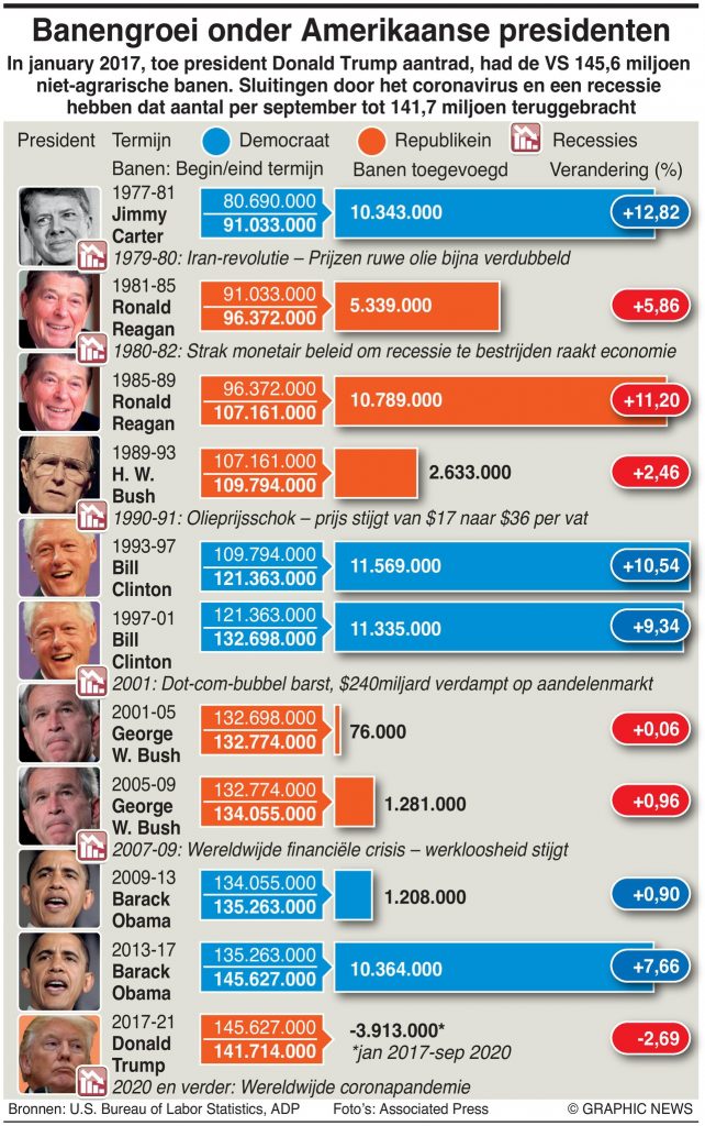 During the 43 years since President Jimmy Carter entered office, the U.S. Bureau of Labor Statistics has recorded 71.3 million new jobs. Democrats added 44.8 million when they were in the White House, compared with 26.5 million during Republican presidencies.