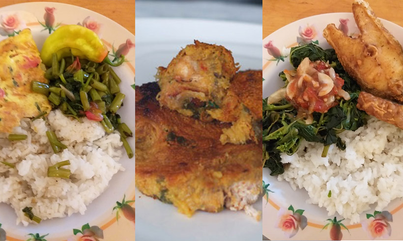 De gerechten die wij dus voor deze dag tegenkwamen zijn kandra vis en tempeh, ei met dagoeblad als zijgroente