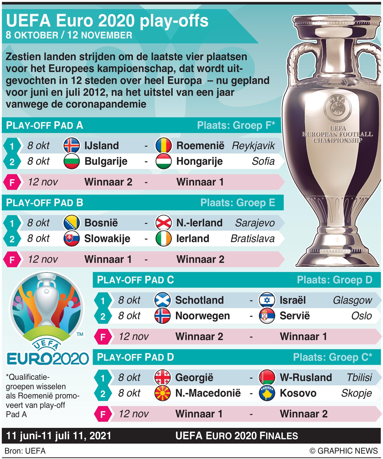 October 8, 2020 – November 12, 2020 – The Euro 2020 play-offs take place as sixteen nations will battle it out for the final four places in the UEFA European Championships, set to take place in 12 cities across Europe. The showpiece tournament is now scheduled for June and July 2021 after being delayed by one year due to the coronavirus pandemic.