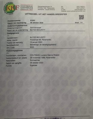 Er is nog steeds geen duidelijkheid over wie precies achter Blitzz Security staat en door wie precies het bedrijf op een dubieuze manier werd aangetrokken. Passagiers uit Nederland werden verplicht om Blitzz Security ruim SRD 5.000 te betalen voor tien dagen bewaking in thuisquarantaine. Luciano Coutinho zou de eigenaar zijn volgens een KKF-uittreksel. Dagblad Suriname nam contact op via het geregistreerd contactnummer van Coutinho. De redactie trof aan een persoon die direct na het horen van de naam van de verslaggever en het medium, zich voordeed als ene āheer Leeflangā. āDe heer Coutinho is niet hier. Hij komt pas tegen 19.00 uur terug. Ik ben medeoprichter van Blitzzā, stelde Leeflang. Op vragen of de krant hem dan als medeoprichter wat verduidelijkende vragen kon stellen, werd geantwoord met: āOp dit moment kan dat nietā. āKunt u over een half uur terugbellen.ā Ruim een uur later werd er weer gebeld naar het mobielnummer van Coutinho. Leeflang gaf toen aan dat noch hij noch Coutinho een statement aan de pers zouden afstaan. Weliswaar zou Coutinho vandaag (maandag) een statement opsturen naar de media. āHij komt met een statementā, waren de woorden van Leeflang. Het bedrijf staat volgens het KKF-uittreksel aan de Plutostraat 96. Echter blijkt ook dat het om een vals adres gaat, want op dit adres staat een woning van iemand anders.