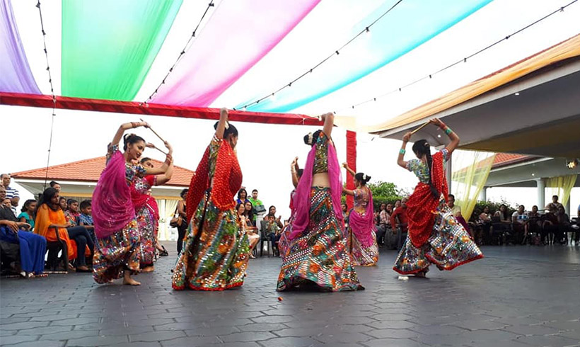 Dandiya wordt in het westen van India tijdens Navratri gedanst. Dagblad Suriname haalt uit bronnen het volgende over deze vorm van dans. Dandiya wordt oorspronkelijk uitgevoerd door mannen en vrouwen die in twee cirkels dansen met stokken in hun handen. De stokken (dandiya’s) van de dans vormen het zwaard van Durga, de Moedergodin. De Dandiya dans wordt met stokken gedanst van 40 cm lang en die stokken geven het ritme aan. Je kan zelf een dans doen zonder andere instrumenten. De stokken zijn al je instrumenten en daarmee geef je het bewegingsritme aan. Elke danser heeft twee stokken en men danst in twee cirkels. De ene cirkel gaat met de klok mee en de andere gaat tegen de klok in en onder het passeren van elkaar, tikt men met de eigen stokjes op de tegenover dansende persoon zijn/haar stokjes. In Suriname werd op 13 oktober en 14 oktober 2018, het Dandiya Festival gehouden te Utopia Heritage. Een ieder was vrij voor deelname. Op de foto’s een terugblik naar dit gebeuren.
