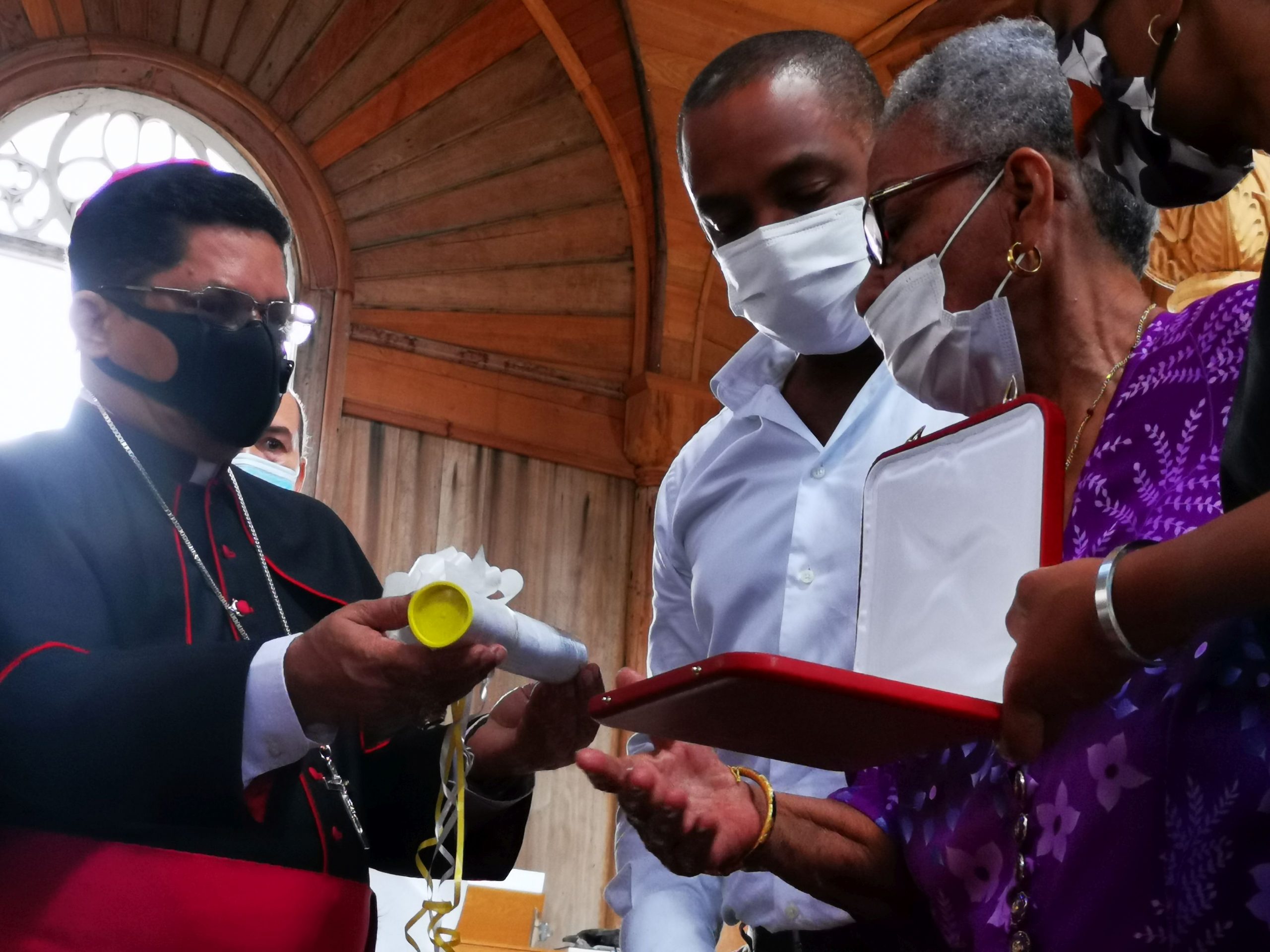 First lady Melissa Santhoki-Seenacherry: āHet is een bijzonder mooie pauselijk onderscheiding aan een bijzonder mens, die zich zijn hele leven lang dienstbaar heeft gesteld. Hij is een grote zoon van Suriname. Wij moeten hem en zijn gezin, dat hem daarbij heeft ondersteund, blijven herdenken. Wijntuin is een voorbeeld voor iedereen die iets wil betekenen voor de mens en het land. Daarom neem ik een voorbeeld aan hem.ā