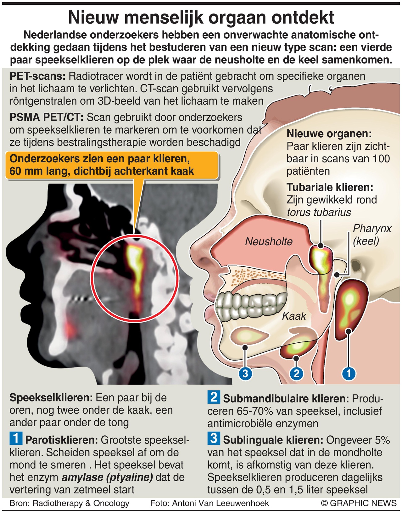 “The two new areas that lit up turned out to have other characteristics of salivary glands,” Valstar said. Studies of two corpses at the Amsterdam UMC confirmed this function.