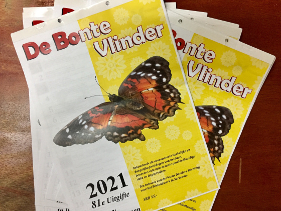 Ook deze editie zit boordevol informatie over de kerk, over de liturgie, de heilige van de dag en bijzondere gebeurtenissen in Suriname. Met de opbrengsten uit de verkoop van de Bonte Vlinder worden projecten van de kerk in het binnenland gefinancierd. “De kalender is verkrijgbaar bij de parochies. U ondersteunt ons werk in het binnenland”, zegt pater Vigelandzoon.