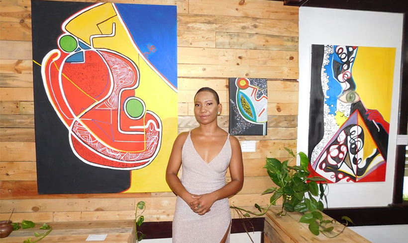 De kunstenares Rachel Nijman neemt deel aan “Artist in Residence”. Dagblad Suriname verneemt het volgende van Rachel. Zij verblijft tot vandaag bij Zus & Zo. Zij is al 3 jaren officieel bezig met haar kunst carriĆØre, en wel het vervaardigen van schilderijen. De werkstukken die hangen in Zus en Zo zijn allemaal te koop en ze zitten in de prijsklasse tussen $ 85 – $ 650. Zij vindt het een fantastisch initiatief van de bedenkers. ā€˜Dat er is gedacht aan het geven van meer publiciteit aan kunst en dan ook nog kunst van Surinamers, vind ik een geweldig idee en een mooi cadeau. Zo een kans moet je met beide handen grijpen als je die krijgt, dat heb ik gedaan en de anderen die voor mij hebben geĆ«xposeerd en degenen die na mij volgen ook. Behalve zo actief te zijn op social media waarbij de verkoop van mijn werkstukken vlot verloopt, had ik ook de behoefte om te exposeren zodat ik persoonlijk met anderen kon praten, van gedachten wisselen en natuurlijk mijn kennis en boodschap kon overdragen tijdens de workshops en met de Artist in Residence heb ik dat kunnen verwezenlijken’ aldus Rachel Nijman. Iedere week logeert een kunstenaar in een van de kamers van Zus & Zo en wordt er op de eerste verdieping een expositieruimte geheel naar wens van de kunstenaar ingericht. ( Foto: Regillio Derby)