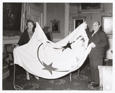 In 1954 werd de status van Suriname als kolonie veranderd in die van Nederlands Overzees Gebied. Dat ging gepaard met een eigen Surinaamse vlag. De vijf sterrenvlag van 1959 – 1975 duidt op de vijf grootste bevolkingsgroepen naar huidskleur aan. De zwarte ster staat voor de Creolen, de bruine voor de Hindoestanen, de gele voor de Chinezen, de rode voor de Inheemsen, en de witte voor de Europeanen. De sterren waren verbonden door een zwarte band als eenheidssymbool. De witte achtergrond stond voor vrede.