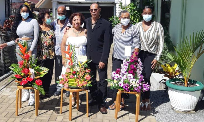 Op zaterdag 07 november 2020 vierde het echtpaar Simpson-Schuls in alle stilte hun gouden bruiloft. Dagblad Suriname verkreeg de volgende informatie van Bic Paramaribo Zuidwest. Echtgenoot Simpson, Eduard geboren op 17 oktober 1946 te Paramaribo, werkte eerst bij Vabi NV., daarna bij de Suralco. Daarna vertrok hij naar Nederland waar hij in de scheepvaart werkte. Hij heeft als hobby’s voetballen en bezig zijn met zangvogels. Echtgenote Simpson-Schuls, Briscia is geboren op 03 januari 1950 in het district Marowijne. Zij had voor haar vertrek naar Nederland gewerkt bij een advocatenbureau en daarna bij de Waterleiding Maatschappij Suriname. Als hobby heeft zij planten. Het echtpaar belijdt het RK. geloof. Samen hebben zij 1 dochter en 2 zonen, die woonachtig zijn in het buitenland. Het echtpaar gaf te kennen, 50 jaar huwelijk te hebben bereikt door respect, geduld en liefde voor elkaar. Het echtpaar mocht uit handen van districtssecretaris Rosanna de gebruikelijke enveloppe met inhoud in ontvangst nemen.