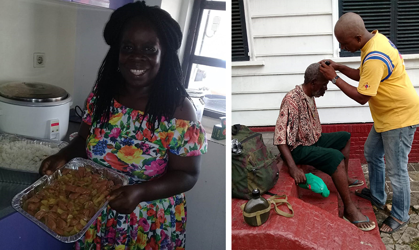 De Surinaamse, Petrusie Madjerin, verleent samen met een groep medewerkers bijstand aan dak- en thuislozen in de binnenstad. Dagblad Suriname verneemt het volgende van haar. Het bijstand verlenen doet de groep door de dak- en thuislozen te voorzien van een knipbeurt, schone kleding en voeding. De groep is op 12 november jongstleden van start gegaan. Petrusie stelt dat zij alle daklozen en thuislozen wil bereiken voordat de feestdagen in december ingaan. Zij heeft ook gesprekken gevoerd met de president, voordat hij aan de macht was, betreffende het verschaffen van onderdak aan deze groep. In afwachting daarop werken zij momenteel aan dit initiatief. Het geheel wordt gedaan met inachtneming van de Covid 19 regels. ( Foto: Regillio Derby)