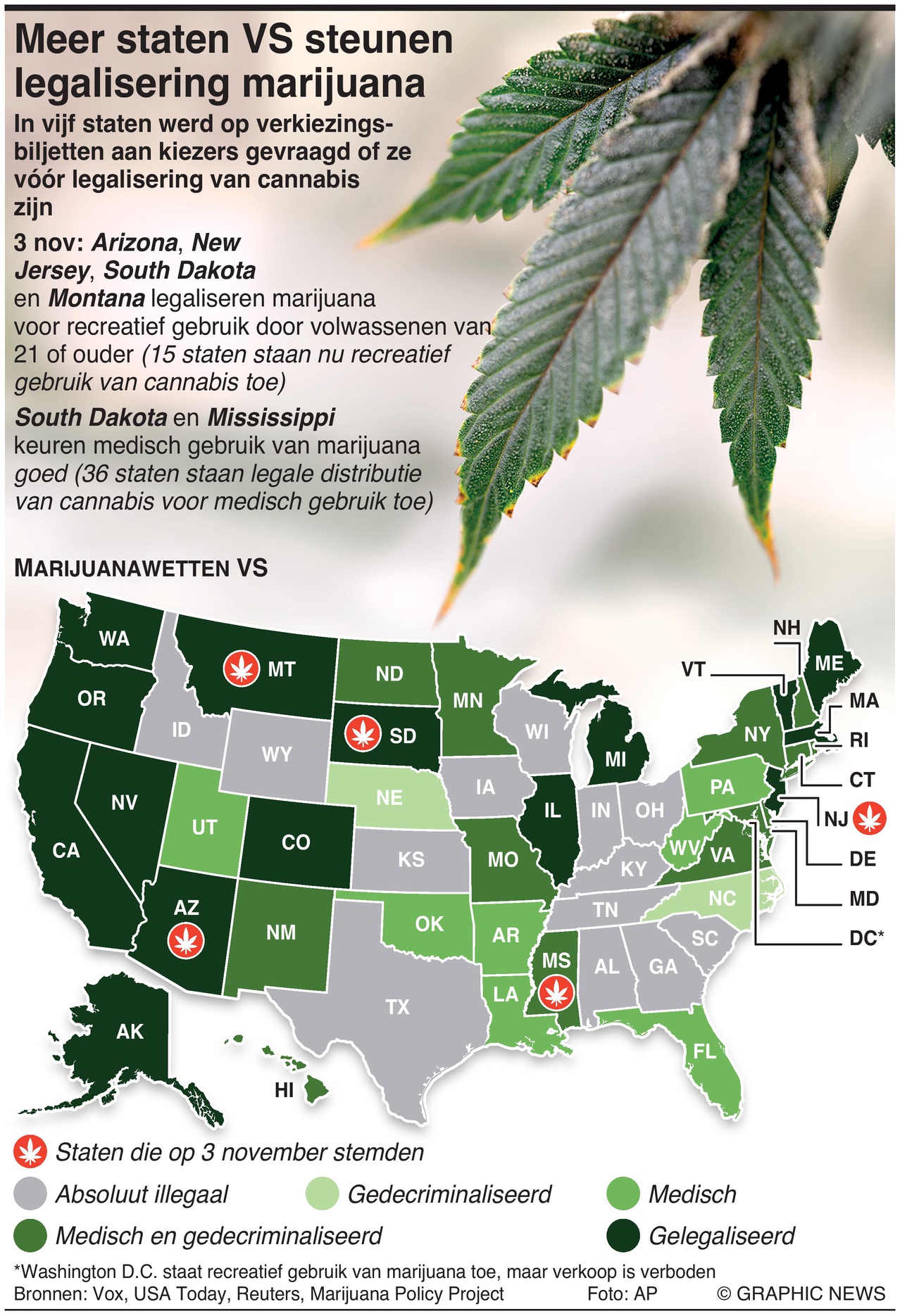 Election ballot papers in five states asked voters to decide on the legality of cannabis use.