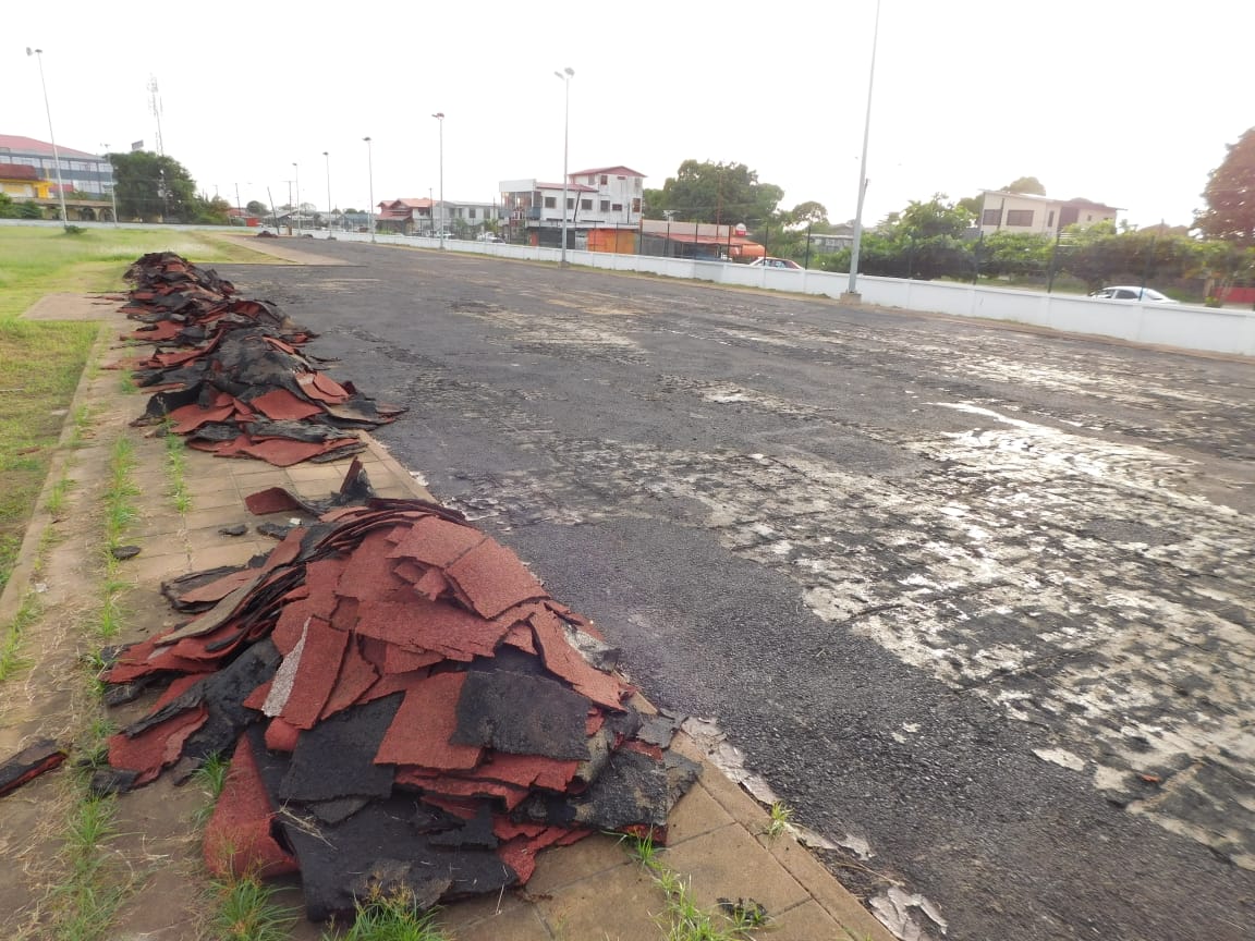 De verwaarloosde atletiekbaan op het Willebrod Axwijk Sportcomplex (Sosis) werd woensdag verwijderd (foto: Regilio Derby)