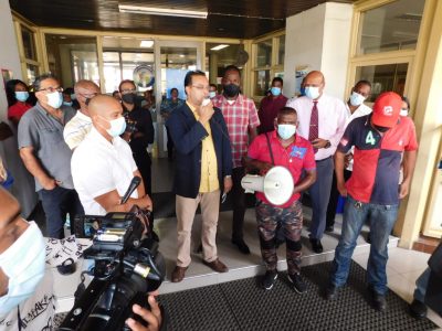 Enkele honderden personen uit verschillende districten hebben gisteren voor het ministerie van Openbare Werken aan de Mr. Jaggernath Lachmonstraat geprotesteerd om aandacht te vragen voor hun rechtspositie. Het gaat om ambtenaren die in dienst zijn genomen tijdens de vorige regering, maar een brief hebben gekregen van de pas aangetreden regering om thuis te blijven. Hierna zijn ze nooit meer opgeroepen om aan het werk te komen. Anderen hebben beschikkingen maar komen niet voor in het systeem van het ministerie. De vakbond onder leiding van Michael Sallons had een oproep gedaan aan alle OW’ers van Albina tot en met Nickerie om zich aan te melden. De mensen willen het salaris hebben waarvoor zij maanden hebben gewerkt en nog steeds niet hebben ontvangen, terwijl zij aan de andere kant ook zekerheid willen hebben over hun arbeidsplaats. “Wie heeft gewerkt, moet betaald worden”, zegt minister Riad Nurmohamed. Ook hij begrijpt dat het proces van onderzoek te lang duurt. Hij belooft wel om onmiddellijk naar mogelijkheden te kijken over hoe de ziektekostenverzekering van de mensen verlengd kan worden, aangezien veel van de mensen ook kinderen hebben die nu niet medisch zijn verzekerd. Daarnaast zal hij nagaan of de groep gedupeerden alvast een vergoeding kan krijgen. Hierdoor kan rustig door worden gewerkt met de dossiers. Het gaat volgens Nurmohamed om een groep van 300 tot 500 personen.
