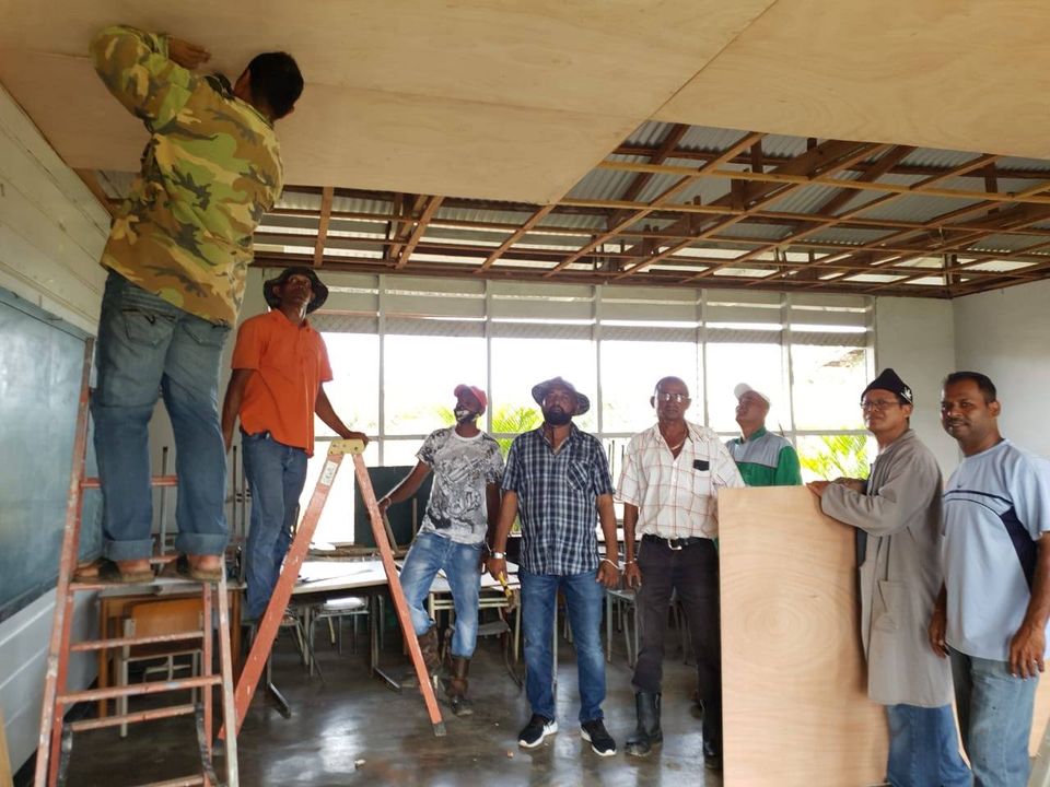 ‘Deze heren hebben hun weekend opgeofferd voor de school’, zo berichten de Oudercommissie en het schoolhoofd. ‘Wij zijn er nog niet, maar willen alvast een ieder bedanken voor zijn/haar bijdrage op welke wijze dan ook.’ De districtscommissaris heeft zelf ook de handen uit de mouwen gestoken en geholpen met de opknapwerkzaamheden.