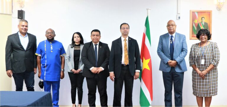 De Guyanese minister Juan A. Edghill van Openbare Werken heeft een werkbezoek gebracht aan zijn Surinaamse collega, Riad Nurmohamed. Tijdens het bezoek waren ook aanwezig minister Albert Jubitana van Transport, Communicatie en Toerisme, Michel Amafo, directeur van de Maritieme Autoriteit Suriname (MAS), Ranu Mathura namens N.V. Luchthavenbeheer, de Guyanese ambassadeur Elisabeth Harper en Civieltechnische Werken directeur Santosh Soman van Openbare Werken.
