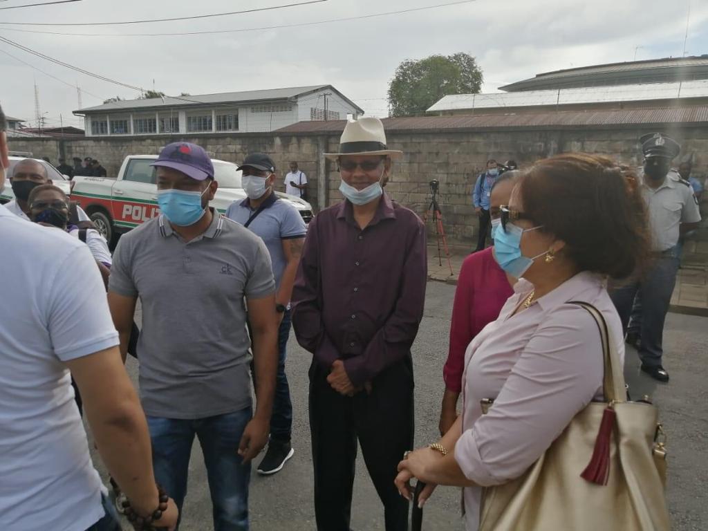 Een van de aanwezigen was de activist Sibrano Pique, die diverse keren met een handjevol aanhangers tegen het beleid van de regering Santokhi-Brunswijk heeft gedemonstreerd. Bouterse heeft even met hem gesproken alvorens het gerechtsgebouw binnen te gaan.