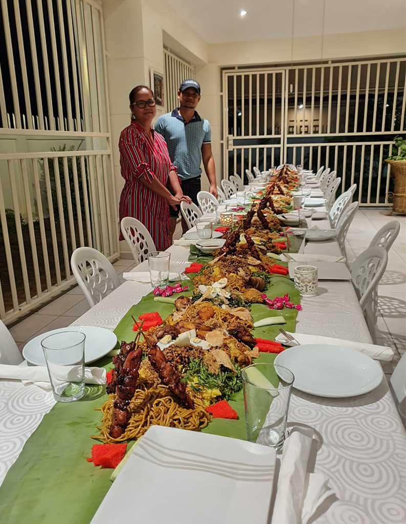 Een bekend Javaans gerecht is Berkat. Eigenaar van restaurant Shaqien vertelt het volgende over deze familie-berkat. Berkat is een heerlijk Javaans gerecht dat wordt uitgedeeld bij het welbekende “genduren’. Dit is een feest dat wordt gehouden door Javanen bij speciale aangelegenheden zoals besnijdenis, trouwfeest. In Suriname wordt de berkat gewikkeld in bananenblad of warimbo blad. Het bestaat uit: witte rijst, gele rijst, bamie, goedangan, seroendeng, gele kip in kokos, aardappel sambel en pejeh met nog wat kleine dingen erbij. De Familie Berkat van Shaqien is bescheiden vanwege decoratie met sate’s, apem en krupuk. Het wordt opgediend in een grote dienblad, afhankelijk van hoeveel families er zijn. De eigenaar met echtgenote en een team staan achter de bereiding van deze Familie-berkat. De benaming van het gerecht zegt al familie Berkat dus er kunnen, meerdere gezinnen en families van genieten. Shaqien werkt daarom afstemming vooraf met de bezoekers, zodat het team weet voor hoeveel personen, families zij te werk moeten gaan en zaken moeten voorbereiden.