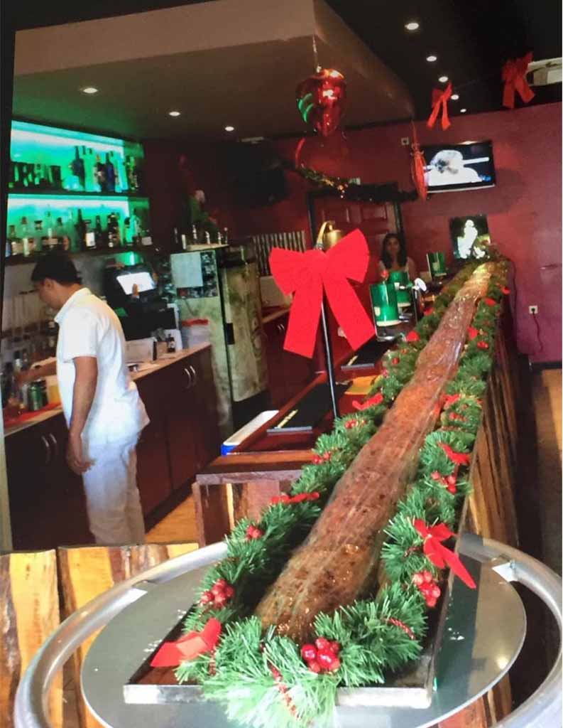 Het is decembermaand, traditiegetrouw is het zoals jaarlijks, weer tijd voor de bekende kerstbroden. Dagblad Suriname verkreeg de volgende informatie van Ronny Pahlad, eigenaar New Suriname Dream Cafe. Het is al 7 jaren dat wij geen langste kerstbrood hebben gepresenteerd aan de samenleving. De reden hiertoe is dat de “stenen oven” er niet meer is om het geheel in 1 lengte te bakken. Sedert deze activiteit in “De Punt “ was het altijd een groot spektakel rond dit , onze, “langste kerstbrood “. Er was begonnen met een brood van 5 meter en de laatste was 9 meter, en dit werd gebakken in oude Dream Cafe aan de Herenstraat. Dat recept ligt bij de bakker Naushaad die het niet wil vrijgeven. Met Dream Cafe loopt het naar omstandigheden redelijk. Covid treft zeker de Horeca. We proberen, ondanks de vele hobbels rond covid, toch nog te overleven aldus Pahlad.