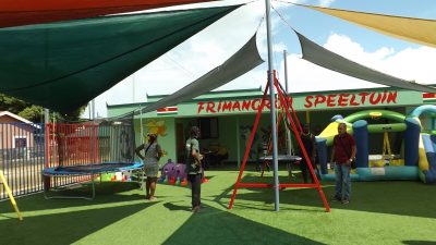 Nieuwsgierig naar wie achter de bedrijvigheid staat, klopte Dagblad Suriname aan op het aangeduide adres. Ondernemer Mario Sallons (38): “Welkom bij Frimangron Speeltuin. Het is een gebaar naar de kinderen van de buurt toe, zodat zij zich kunnen vermaken in een mooie en veilge omgeving.”