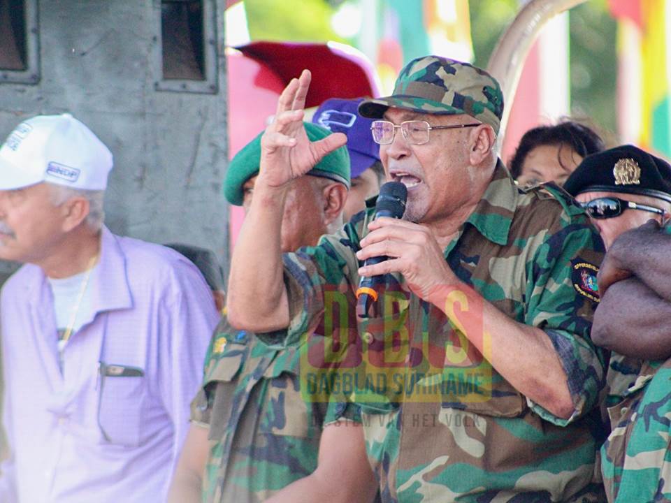 ‘Als u daadwerkelijk inhoud wilt geven aan Suriname is van de Surinamers, dan zullen wij in de bres moeten springen. Ik weet dat vele mensen ons niet begrijpen, maar laten wij elkaar beginnen te begrijpen dat er een historische taak is weggelegd om vanuit deze eenheid dit niet zo door te laten gaan’, sprak Bouterse.