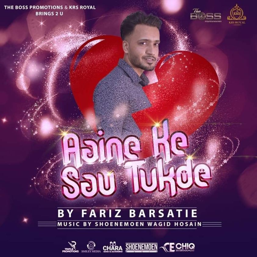 De Surinaamse artiest Fariz Barsatie heeft weer eens een cover op zijn naam gezet en wel met de release van ‘Aaine ke sau Tukde’. Het is origineel een lied uit de film “Maa” bekend uit 1950. Origineel is gezongen door Kumar Sanu. Het is een initiatief geweest van The boss Promotions en KRS Royal. Het muzikale gedeelte is gedaan door Shoenemoen Wagid Hosain. Fariz Barsatie heeft reeds voor de komst van de corona pandemie zijn solo album “Meri Pehchan” uitgebracht. Zoals bekend heeft deze zanger voorheen ook al een aantal videoclips op zijn naam staan. Het is opmerkelijk dat Fariz Barsatie continu bezig is in de Surinaamse muziekscene en hij maakt daarbij goede vorderingen.