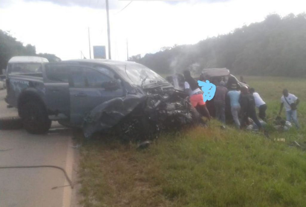 Bij een frontale botsing tussen een busje en een pickup op de Afobakaweg, ter hoogte van Mast 15, vanmiddag zouden meerdere doden zijn gevallen. Er zou sprake zijn van vijf doden volgens nog onbevestigde berichten.