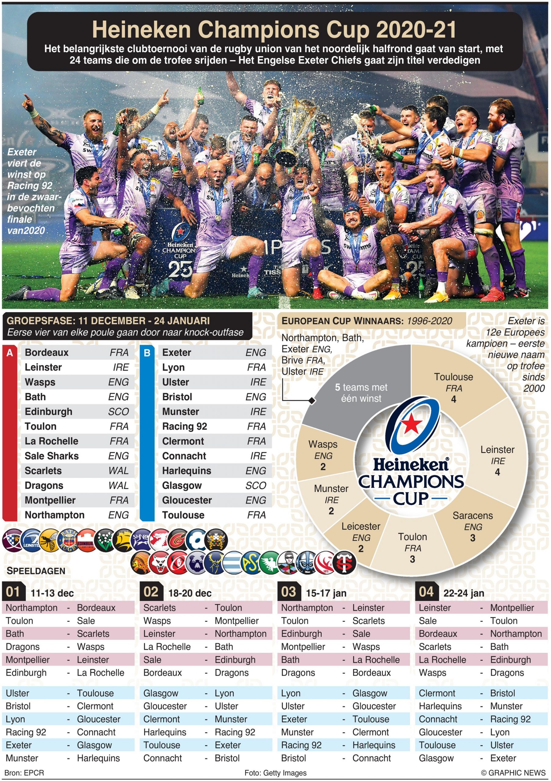 December 12, 2020 – May 22, 2021 – The European Rugby Heineken Champions Cup, the northern hemisphere’s premier club rugby union tournament kicks off, with 24 teams battling to lift the trophy — English Premiership’s Exeter Chiefs are aiming to defend their title.