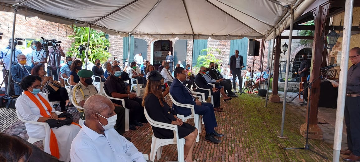 Vandaag vond bij het fort Zeelandia een bloemenhulde plaats ter herinnering van de 15 slachtoffers van de decembermoorden. President Chan Santokhi en leden van de raad van ministers waren aanwezig samen met nabestaanden. Het is na 10 jaren weer dat het staatshoofd van ons land de diensten bijwoont. Voormalig president Ronald Venetiaan was ook aanwezig. Samen met de nabestaanden zijn er bloemen gelegd op de plek waar 38 jaar geleden de mannen zijn vermoord.