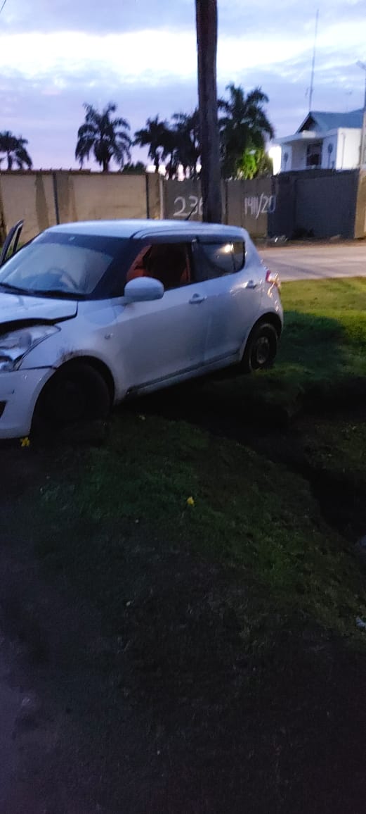 Een auto is vanochtend, vrijdag, bij een inhaalmanoeuvre tegen een elektriciteitsmast van de EBS gereden op de hoek van de Ramdjanistraat en Anton Dragtenweg.