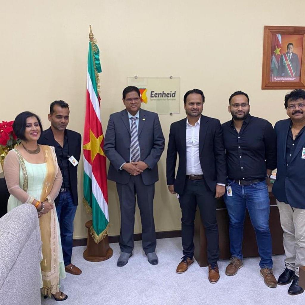 Een team met Robby Badal en Madhushree schittert met de president op foto’s. Robby Badal deelt de foto’s op social media en schreef ‘meeting with honorable president chansantokhi’.