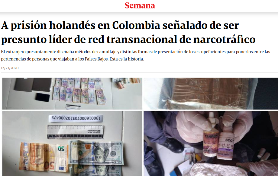 De P. werd in de westelijke stad Popayán aangehouden. Volgens de Colombiaanse autoriteiten liet hij mensen cocaïne naar Nederland smokkelen door de drugs in hun bagage mee te laten nemen in het vliegtuig.