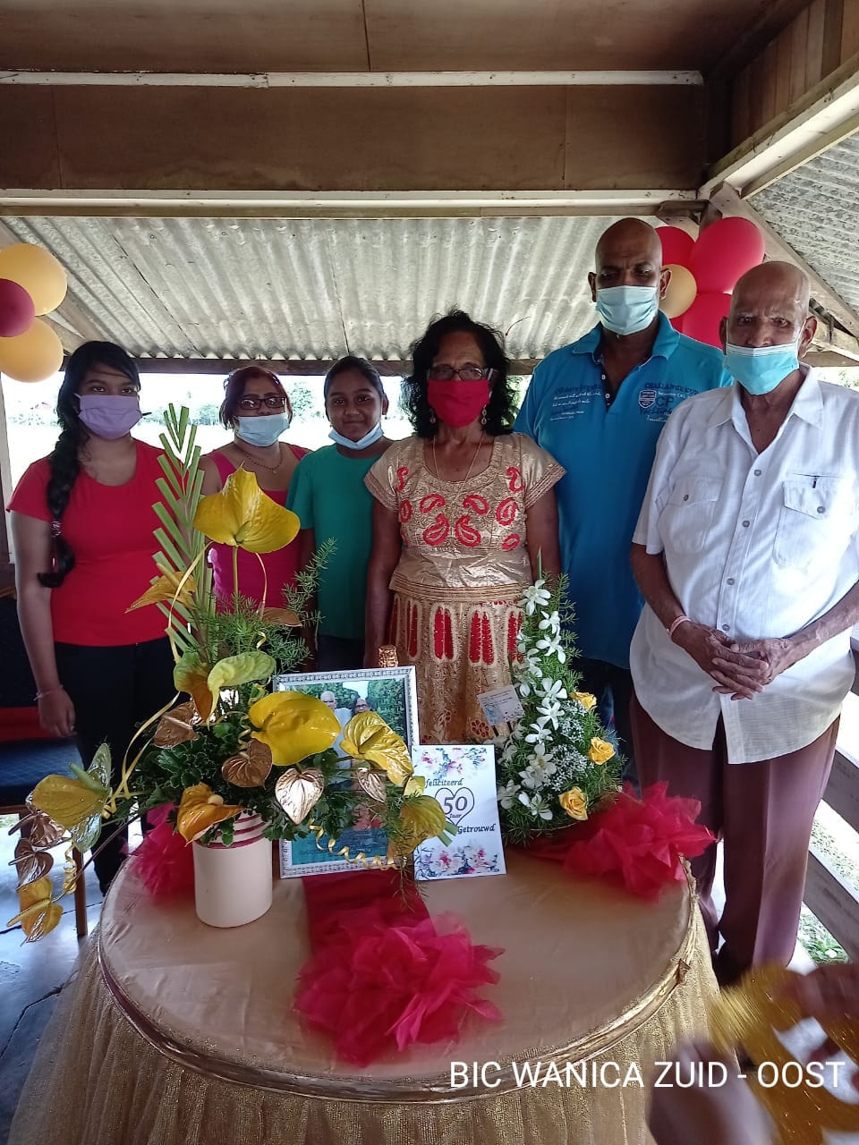 Het huwelijk van echtpaar was gearrangeerd en het werd voltrokken op 26 december 1970, op tweede kerst. Uit dit huwelijk zijn er 4 kinderen geboren waarvan 2 zonen en 2 dochters. Daarnaast hebben zij ook nog 9 kleinkinderen. Zij belijden het hindoe geloof ( Sanatan Dharm ). Het jubilerend echtpaar ontving bezoek van de Ressort Leider de Districtssecretaris mevr. Babel L. en de Bestuursopzichter mevr. Fonkel M., die bij deze gelegenheid de Districtscommissaris, dhr. Goelaman M.S., hebben vertegenwoordigd. De Districtssecretaris overhandigde de gebruikelijke enveloppe, een bloemstuk en ingelijste foto aan het jubilerend echtpaar.