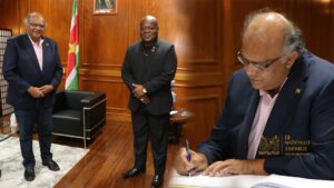 Het herstel van de relatie tussen Suriname en Nederland was dinsdag onderdeel van een gesprek tussen de voorzitter van De Nationale Assemblee (DNA), Marinus Bee, en de nieuwe ambassadeur van Suriname in Nederland, Rajendre Khargi. Khargi bracht een beleefdheidsbezoek aan Bee, zo meldt de Communicatie Dienst Suriname woensdag.