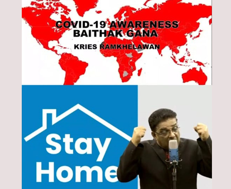 Muziekguru Kries Ramkhelawan heeft zijn voorlichting song ‘Suno Suno Duniya Ke Logo’ gelanceerd. Dagblad Suriname verkreeg de volgende informatie van guru Kries Ramkhelawan. KR Music Institute (KRMI) heeft gewerkt aan de productie van deze covid-19 song in Sarnami Hindi. Het is geschreven door KR Music Institute (KRMI). Het  nummer is op zijn klassiek, modern en traditioneel ‘Baithak Gana’ met de Harmonium, Dhool, Dhantaal en Mandoline gecomponeerd. In de covid-19 situatie lijdt de wereld onder deze crisis en hierbij zeker ook ons geliefd land Suriname. Als schrijver, muzikant en componist heeft Kries Ramkhelawan het initiatief genomen om te ondersteunen met voorlichting middels deze creatie. Het muzikale deel is gedaan door, op de dhol Sunil Shievparesad; de elektronische muzikale invulling is gedaan door Randy Baitali en is gezongen door guru Kries Ramkhelawan.