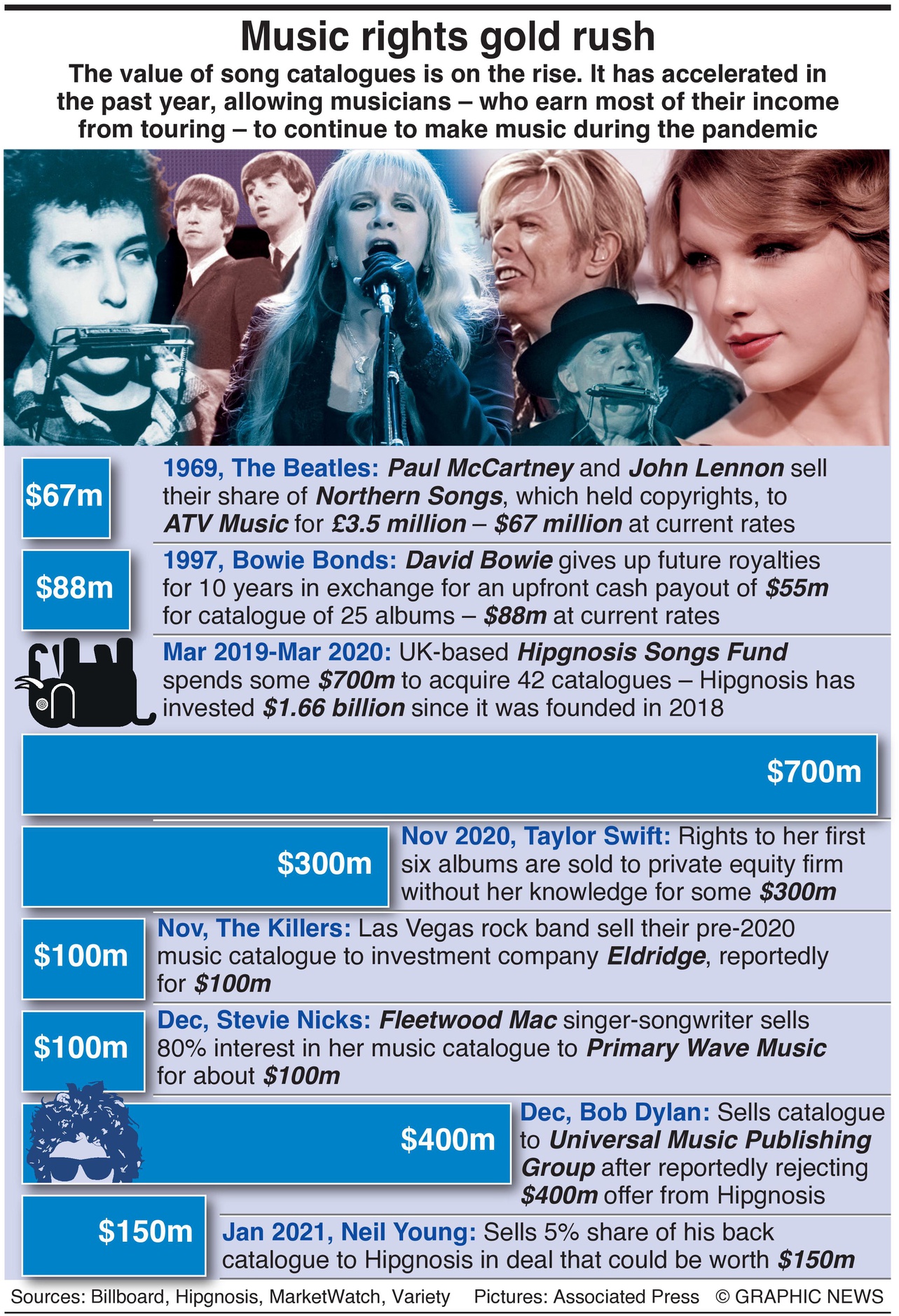 January 8, 2021 – The value of song catalogues is on the rise. It has accelerated in the past year, allowing musicians — who earn most of their income from touring — to continue to make music during the pandemic.