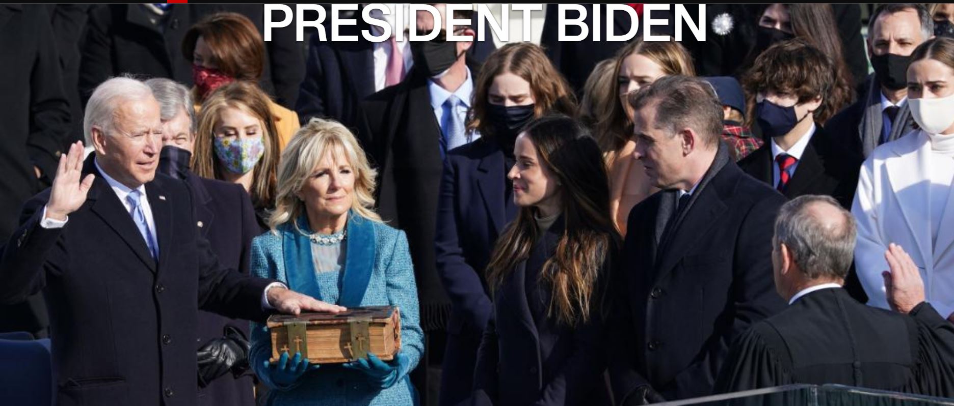 Onder luid applaus en gejuich spreekt Biden zijn eerste woorden als president. “Dit is de dag van Amerika, dit is de dag van de democratie. Een dag van geschiedenis en hoop, van vernieuwing en vastberadenheid.”