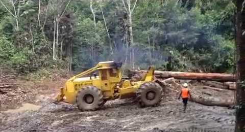De onderdelen van de skidder werden in een pick-up, waarmee de verdachten zich verplaatsten, aangetroffen en inbeslaggenomen.