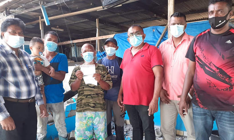 Bestuursleden van de Haathi Club Wanica bezochten de familie Dawoot om de stenen, met een waarde van SRD 7.576,50, te overhandigen.