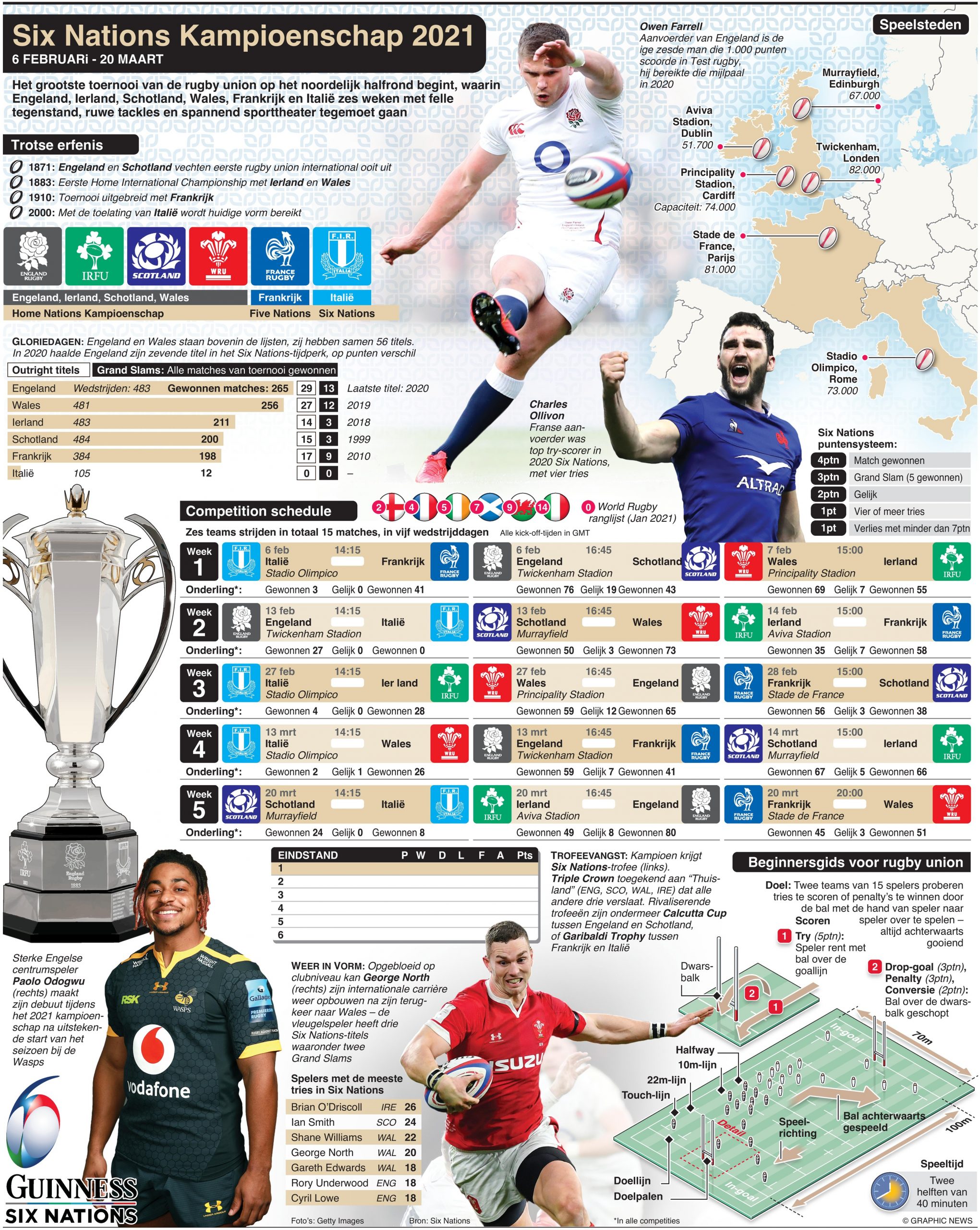 February 6, 2021 – March 20, 2021 – The Six Nations Championship, the northern hemisphere’s premier rugby union tournament, kicks off, with England, Ireland, Scotland, Wales, France and Italy set for six weeks of fierce rivalries, tough tackles and thrilling sporting theatre.