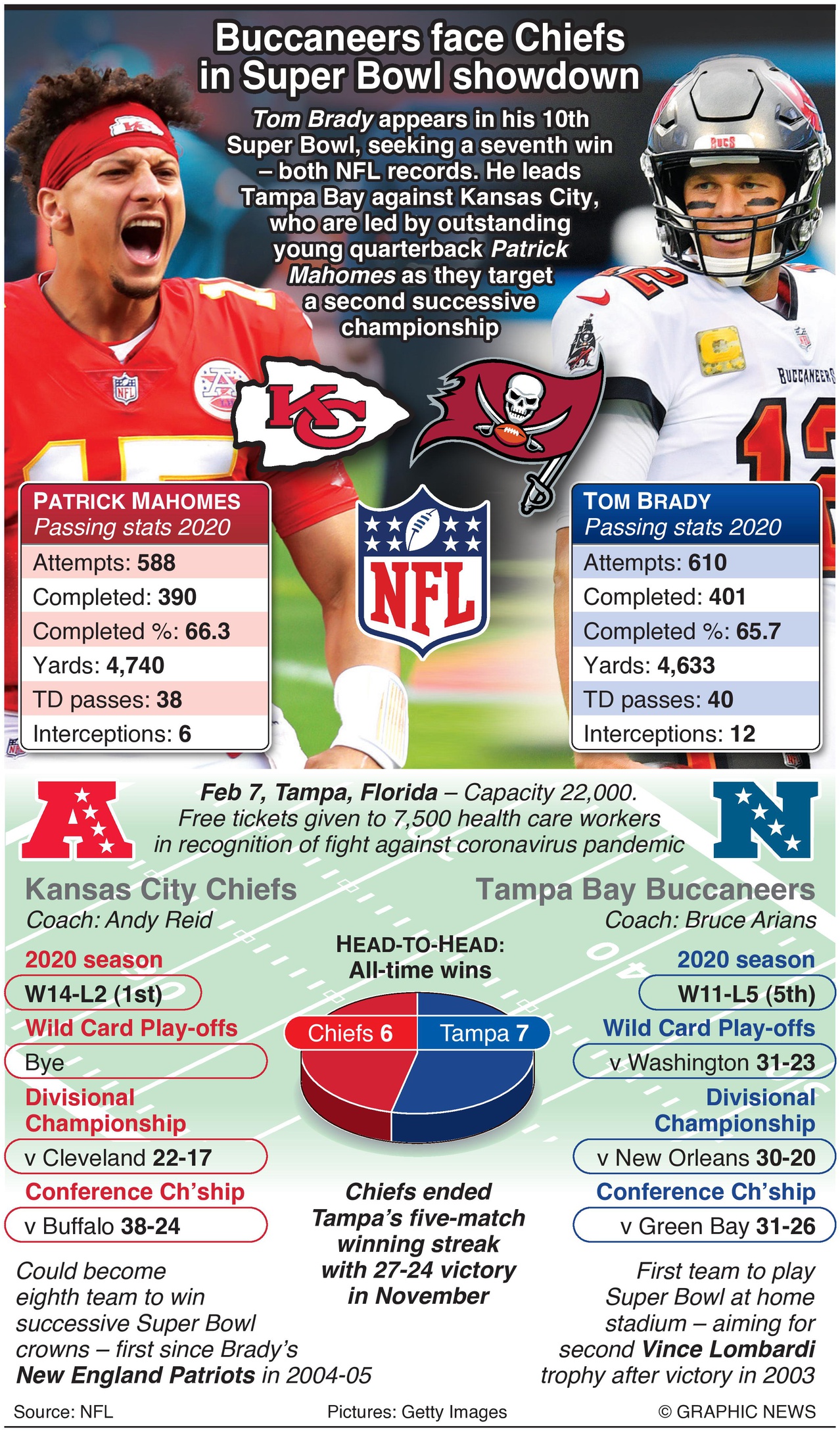 The game is contested by the winners of the American Football Conference (AFC) and the National Football Conference (NFC). This year, legendary quarterback Tom Brady appears in his 10th Super Bowl, seeking a seventh win — both NFL records. He leads Tampa Bay against Kansas City, who are led by their outstanding young quarterback Patrick Mahomes as they target a second successive championship.