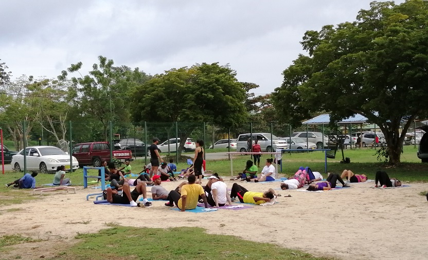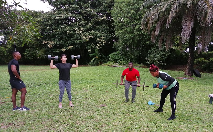 Door alle coronamaatregelen en om de kans op besmetting te verkleinen, kiezen sporters er regelmatig voor om in de openlucht te trainen. Op die manier blijven de mensen actief, laat Jermain weten, die met 3 personen op het veld traint. Een andere groep traint iets verderop en die ondergaan een zware training. Gelukkig voor iedereen scheen de zon op dat moment.