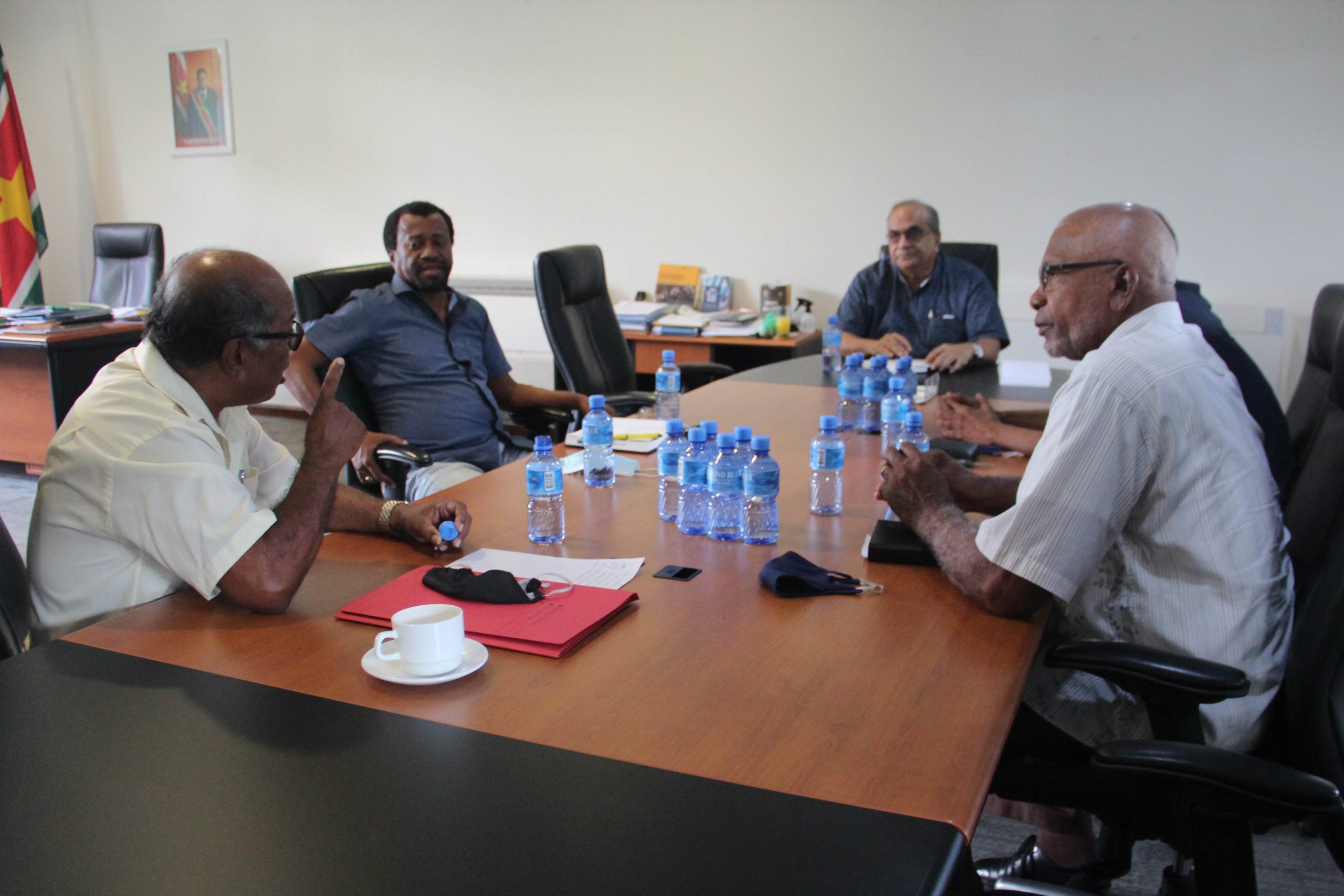 Minister Parmanand Sewdien van Landbouw, Veeteelt en Visserij heeft maandag de voorzitter van vakcentrale C-47, Robby Berenstein, en de vakbondsleiders van Cevihas Dayanand Dwarka en de voorzitter van de Bumble Bee Werknemersbond (SAIL), Roy Haverkamp, zo bericht de Communicatie Dienst Suriname.