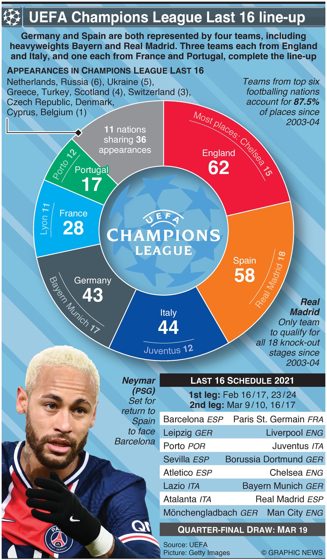 February 16, 2021 – March 17, 2021 – The Last 16 in the UEFA Champions League takes place across Europe, as the tournament reaches the knockout stages. Germany and Spain are both represented by four teams, including heavyweights Bayern and Real Madrid. Three teams each from England and Italy, and one each from France and Portugal, complete the line-up.