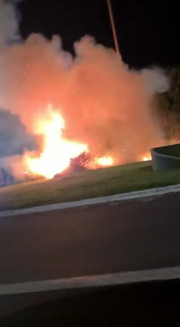 Naar verluidt zouden een of meer onbekenden beplanting in het midden van de rotonde in brand hebben gestoken.