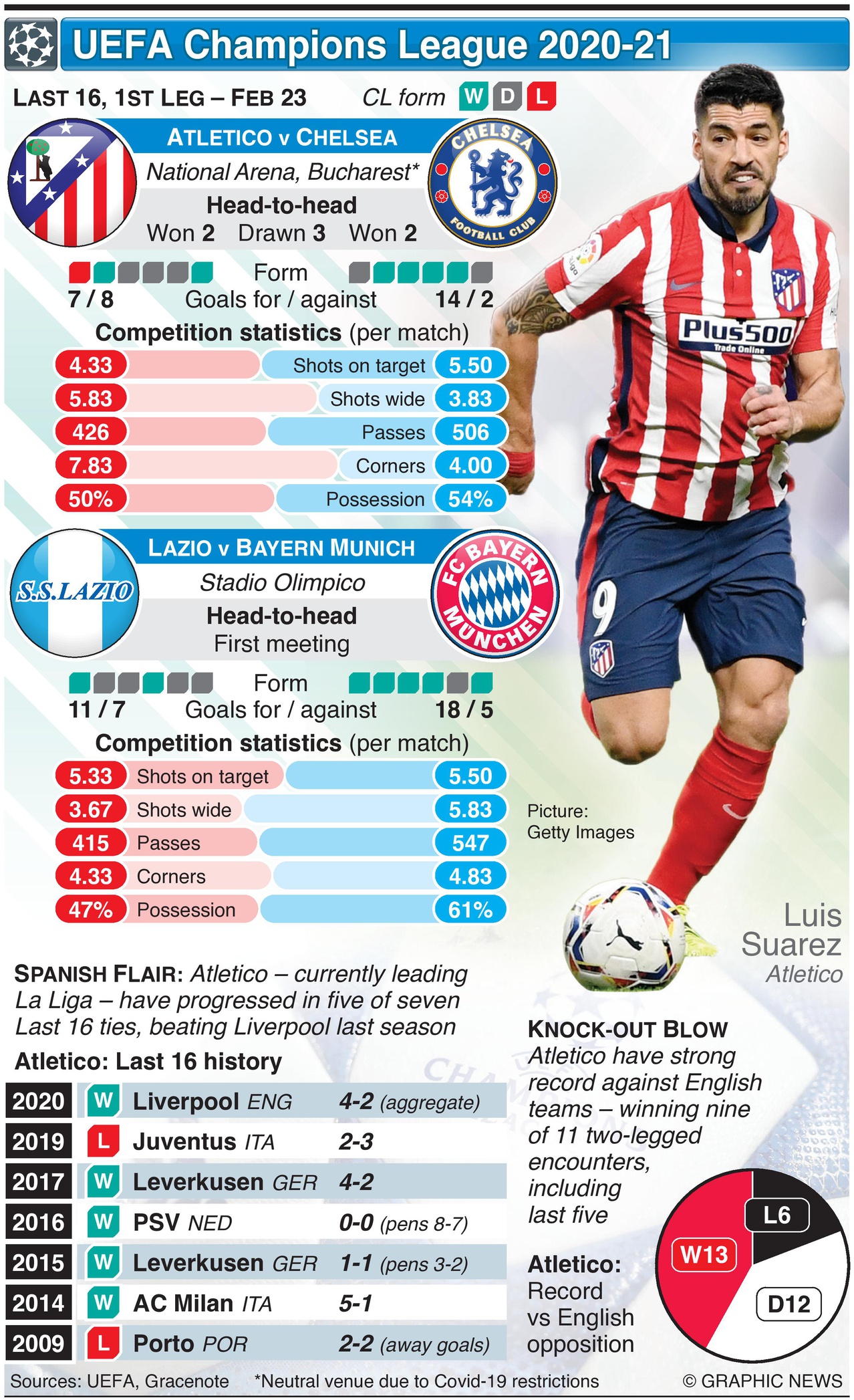 February 23, 2021 – UEFA Champions League Round of 16 first leg matches, including match-ups between Lazio and Bayern Munich at the Stadio Olimpico, and Atletico Madrid against Chelsea at the National Stadium, Bucharest. The second leg for these matches takes place on March 17.