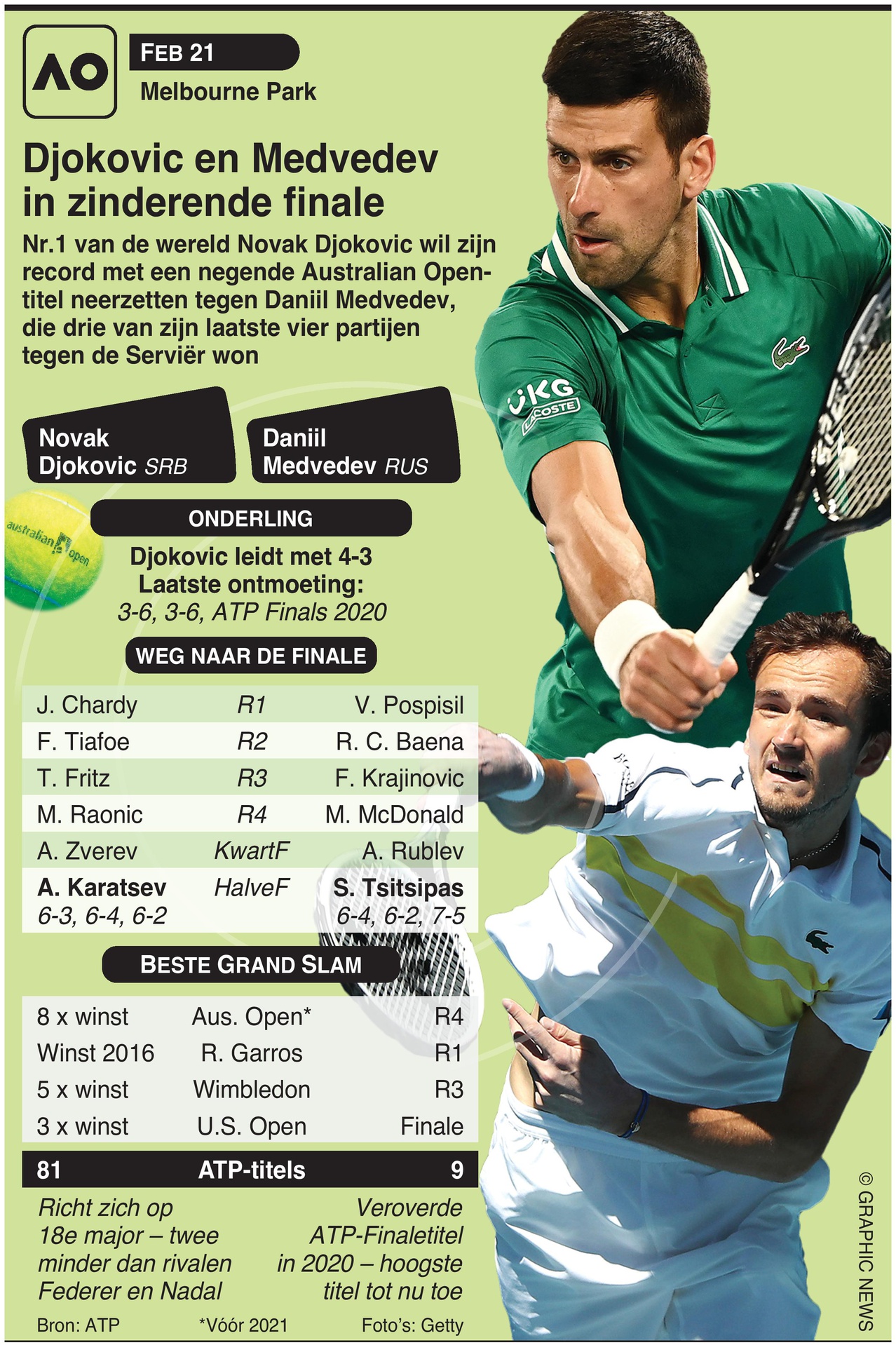 World No.1 Novak Djokovic bids for a record-extending ninth Australian Open title against Daniil Medvedev. The Serb will be appearing in his 28th Grand Slam final overall, and another trophy in Melbourne would place him just two major titles behind the 20 Grand Slams won by perennial rivals Roger Federer and Rafael Nadal.