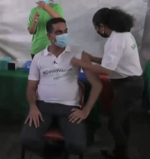 Zoals hij had beloofd, heeft minister Amar Ramadhin van Volksgezondheid dinsdagmiddag als eerste persoon in Suriname het Covid-19 AstraZeneca-vaccin toegediend gekregen. De festiviteiten rond de eerste vaccinaties op het terrein van het Academisch Ziekenhuis werden live op televisie en social media uitgezonden. Na Ramadhin werden zoān 20 zorgmedewerk(st)ers ingeĆ«nt.Ā Het gaat om vaccins uit een eerste door Suriname ontvangen lading. De vaccins, 1.000 in totaal van AstraZeneca, zijn geschonken door Barbados. Met dat aantal kunnen ongeveer 500 frontliniemedewerk(st)ers worden ingeĆ«nt.