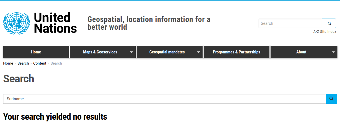 Maar, uit onderzoek door Dagblad Suriname blijkt, dat op de website van de Cartografische Dienst van de Verenigde Naties geen enkele kaart van Suriname te vinden is.