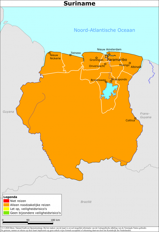 In een reactie tegenover Dagblad Suriname laat Pieter de Vries, eerste ambassadesecretaris Politieke Zaken, Pers en Publieksdiplomatie van de Nederlandse ambassade in Paramaribo, weten: āNederland gebruikt voor alle reisadviezen de kaarten van de cartografische dienst van de Verenigde Naties. Daarvan wijken wij niet af. Omdat we begrijpen dat grenzen in sommige landen een gevoelig onderwerp zijn, hebben we onderaan de kaarten een disclaimer opgenomen: āDe grenzen, namen en tekens op deze kaart impliceren op geen enkele wijze formele acceptatie of erkenning daarvan door het Koninkrijk der Nederlanden.āā