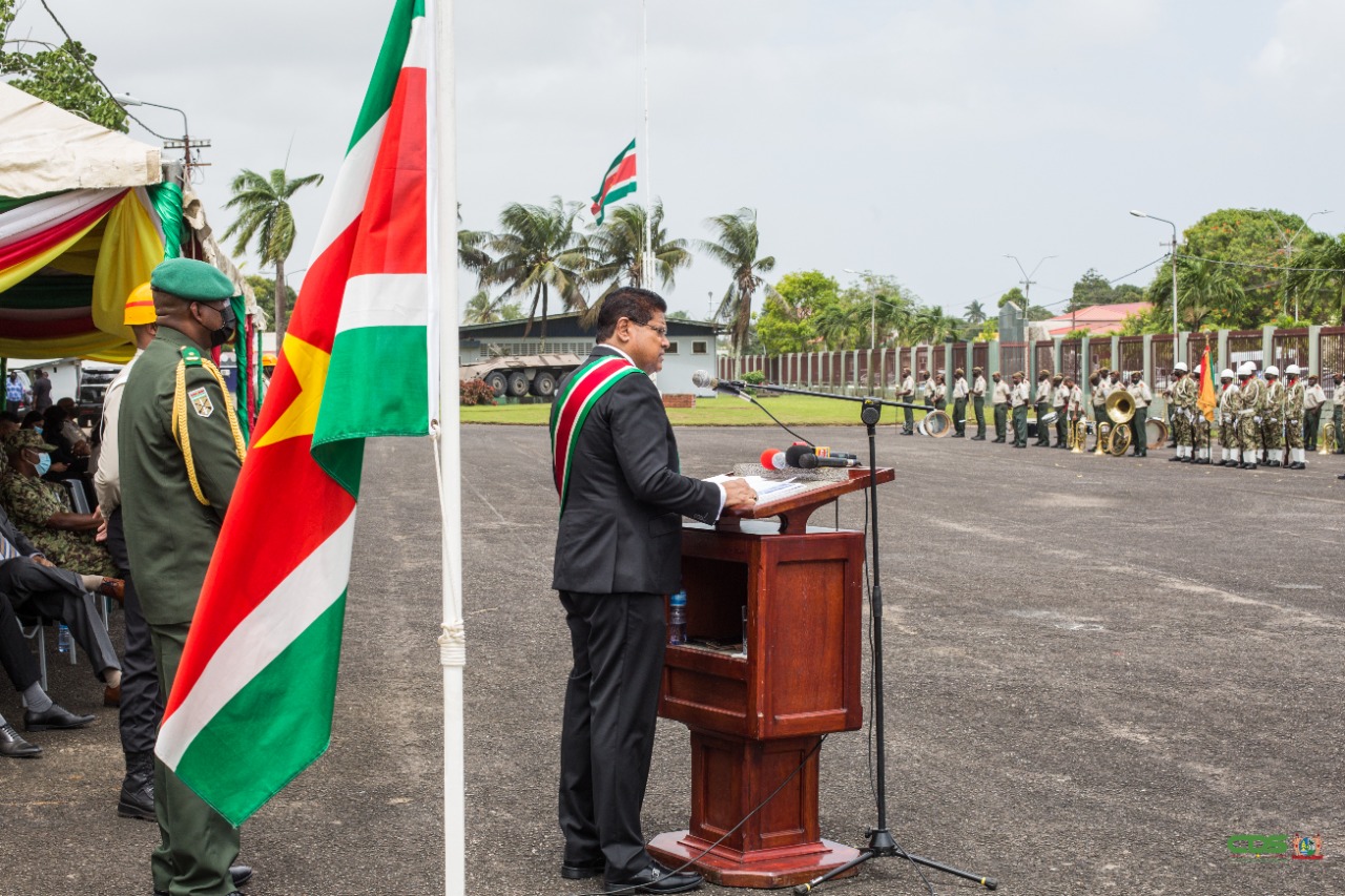 In het kader van het verder beheersen van de valutakoers stelt de regering per 1 maart maatregelen in. Dat zei president Chandrikapersad Santokhi dinsdag bij de beëdiging van legerofficieren in de Memre Buku Kazerne, aldus de Communicatie Dienst Suriname. Hij hield een uitvoerig betoog over de stand van zaken rond de besprekingen met het IMF en benadrukte dat de regering geen leningen afsluit. Hij zei dat de regering nog in onderhandeling is met het Internationaal Monetair Fonds, IMF, en dat partijen al uit meer dan 95 procent van de onderhandelings issues zijn.