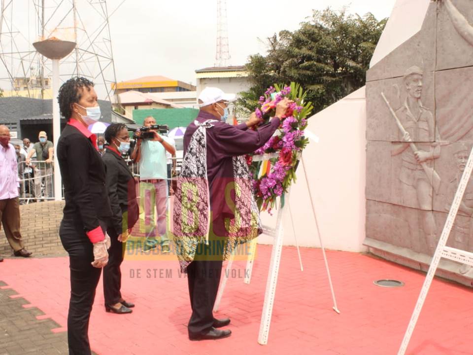 Ondanks een verbod op samenscholing en de afschaffing van de 25 februari als nationale vrije dag, heeft dat de exponenten van de Nationale Democratische Partij (NDP) en hun aanhangers donderdag niet weerhouden om toch in een feestelijke sfeer kransen te leggen op het Revoplein. Onder de aanwezigen die als eerste een krans legde, was ex-president en NDP-voorzitter tevens leider van de revolutie, Desi Bouterse. Na hem volgden enkele leden van de groep van zestien en enkele andere exponenten van de paarse partij, waaronder Ashwin Adhin en Ann Sadi. De kranslegging was in het kader van 41 jaar herdenking van de ‘Revodag’. In zijn toespraak hield de ex-legerleider de aanwezigen voor dat ‘we eigenlijk medelijden moeten hebben met een paar van de zielige mensen die deze dag willen weghalen’. Uiteindelijk blijft het volgens hem een vaststaand feit dat de staatsgreep van 25 februari 1980 een belangrijk deel is van de Surinaamse geschiedenis. Naar zijn zeggen wordt er alles aan gedaan om de NDP te breken. “Laat haters haten, maakt u zich rustig klaar, wees eerlijk en kritisch in de discussies”, zei Bouterse.