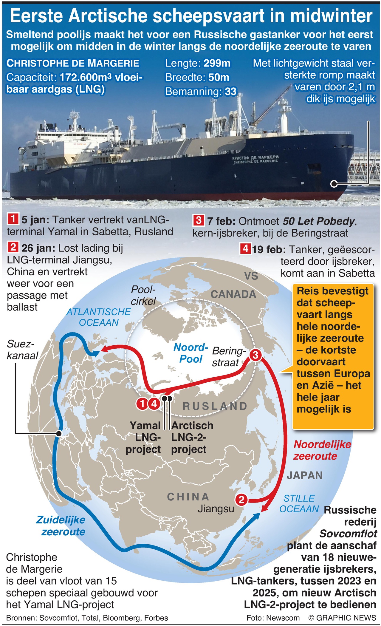 Melting ice in the Arctic allowed a Russian gas tanker to sail through the Northern Sea Route in the middle of winter for the first time.